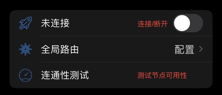 连接:选择需要使用的节点,点击右上角的开关进行连接或断开。